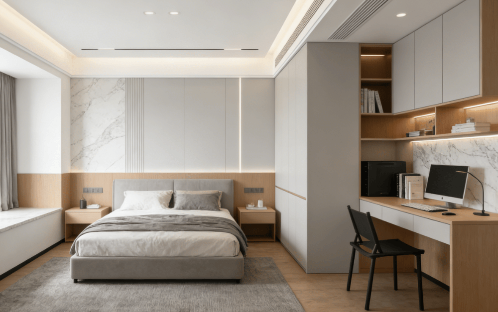 凭借“自产自销”的板材优势,子固家实现“板材-设计-生产-交付”无缝衔接,提供全空间定制解决方案,涵盖衣柜、橱柜、护墙板等全品类产品,覆盖入户、餐厨、卧室、书房等场景。专业团队从需求沟通、精准测量、场景化设计,到生产加工、上门安装全程跟进,支持风格适配与个性化调整,既能契合原木风、新中式、现代简约等多种风格,又能最大化提升空间利用率,同时缩短交付周期,实现高效省心定制。
