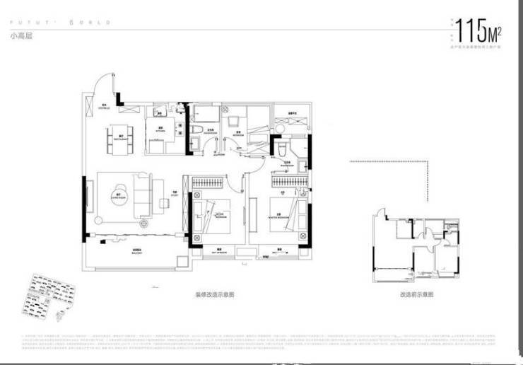 105㎡三室两厅两卫:改善品质户,舒适升级