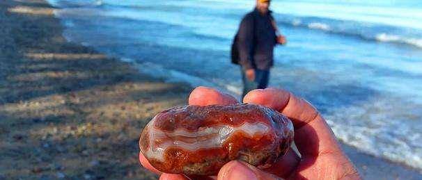 图5 更严重的是,有些人心怀歪念,他们认出了这些五彩石的真正价值——玛瑙。为了谋取利益,他们挑选出珍贵的玛瑙偷偷带走,运往自己的城市,用以改善生活。虽然单独带走几块尚可理解,但大量搬运谋利,却令人不齿。当地政府起初对此毫无察觉,民众亦无法识别这些石头的真正价值,这种行为才得以猖獗。 图6 渐渐地,游客数量减少,但带着鉴别人才的商人却越来越多。他们辨认出玛瑙后,将其装进背包甚至用卡车夜间运走,导致戈壁滩上的五彩石越来越少。幸运的是,随着事态发展,政府终于派来专家鉴定,确认这些五彩石中确有大量玛瑙。