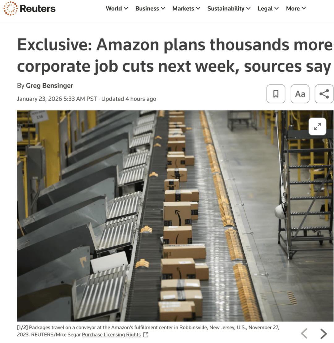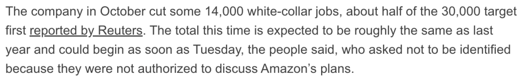 去年10月,亚马逊已经裁掉约14,000名员工,本次裁员规模预计与之前相似,但相关安排仍存在变数。