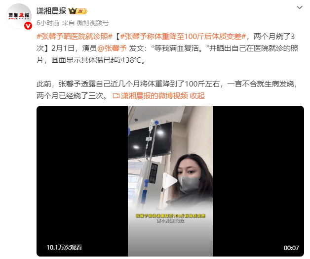 此前,张馨予透露自己近几个月将体重降到了100斤左右,一言不合就生病发烧,两个月已经烧了三次。