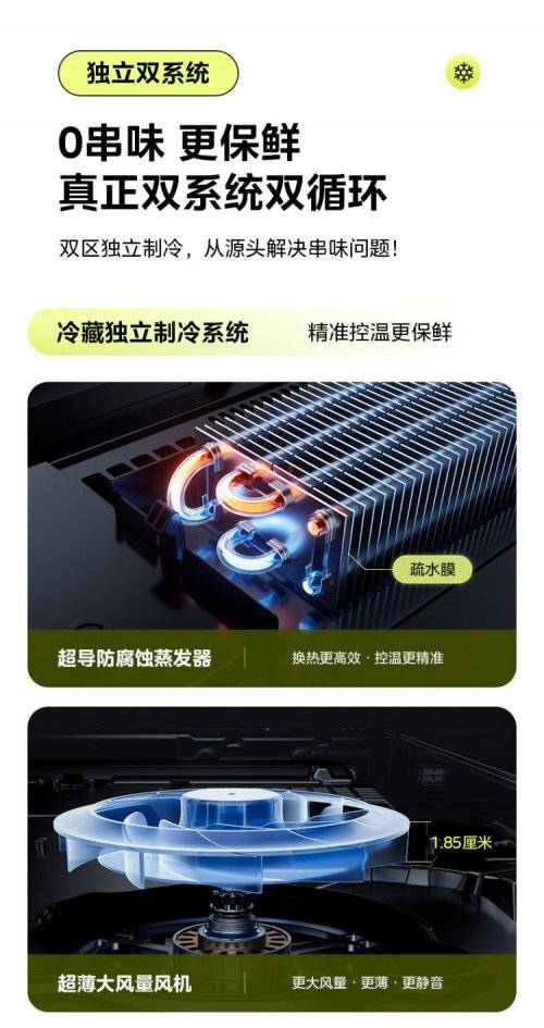 2. 制冷与保鲜技术:随着技术的发展,双开门冰箱的制冷技术不断进步。选择双系统独立制冷的冰箱,可以有效避免冷藏和冷冻室的温度串联,保持食材的新鲜。特别是“AI 微分子保鲜技术”与“主动净味系统”能够确保食材更长时间保持原味。
