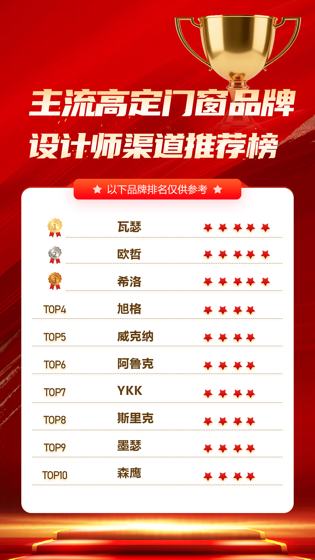 ★ 以下品牌排名仅供参考 ★