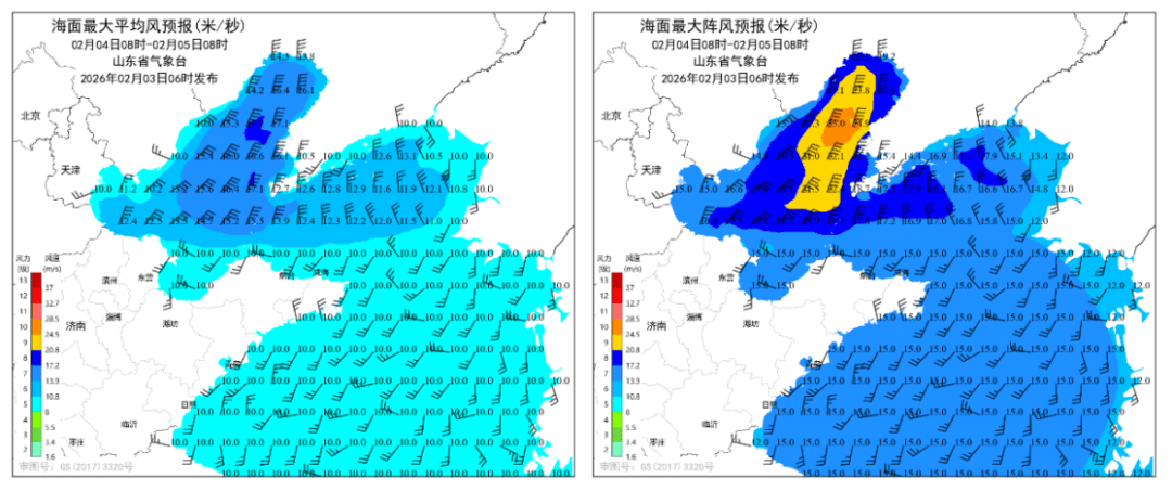 4日白天到夜间,渤海、渤海海峡、黄海北部和中部天气晴间多云。渤海和渤海海峡南风5~6级转北风7~8级阵风9级,黄海北部南风5~6级转北风6~7级阵风8级,黄海中部南风转北风5~6级。