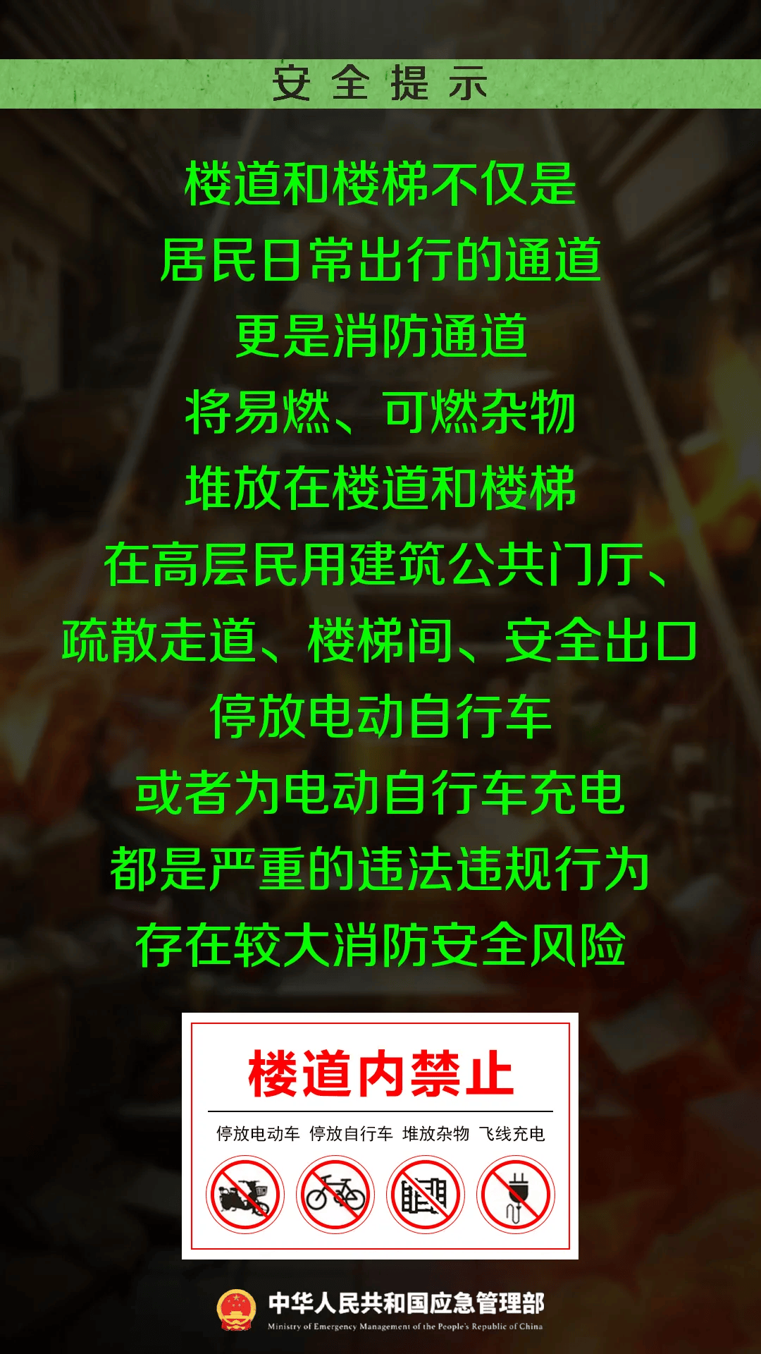 2025年7月,江西宜春一居民楼楼道突发火灾,浓烟滚滚,经查, 起火物为楼道口堆积的废旧纸箱,塑料等杂物。