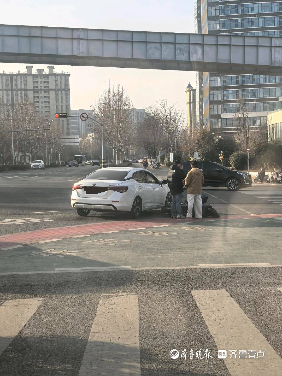 情报站|济南世纪大道路口一私家车与电动车相撞,出行注意安全