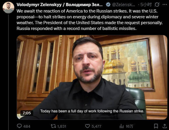 泽连斯基视频讲话:等待美国的回应推文截图
