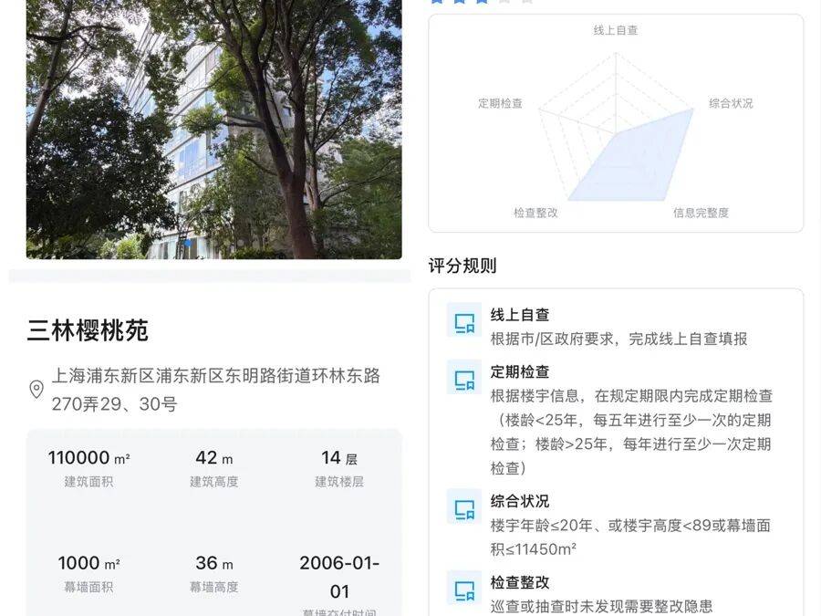 在上海市建筑幕墙管理平台的系统中,这个小区的外立面是玻璃幕墙结构的事实被再次确认了。(如上图)