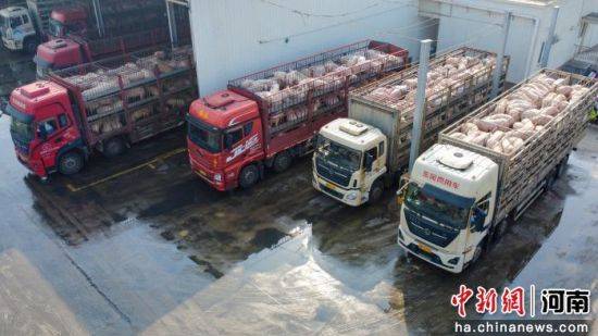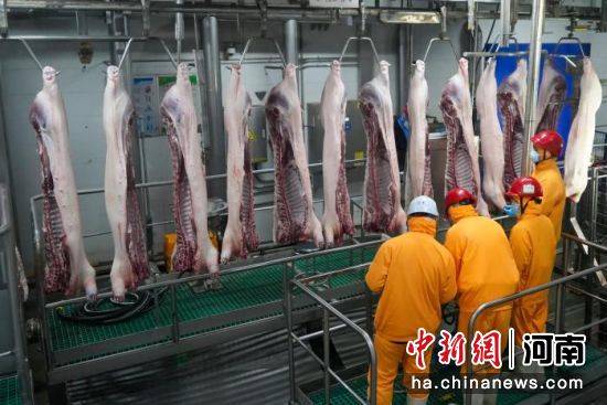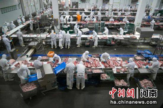 2月4日,河南南阳牧原肉食有限公司,生猪经过屠宰、预冷排酸、分割等一系列标准化流程后,通过冷链运输发往各地市场。春节前夕,企业有序组织生产和配送,保障节日期间民众餐桌的“肉盘子”。