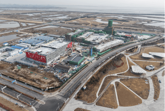 胶州湾畔,由中建八局四公司承建的宋城演艺项目现场繁忙有序,多个单体建筑外立面施工同步展开,室内精装及设备安装工作有序推进,项目整体已进入建设后期阶段,计划于2026年正式对外开放。