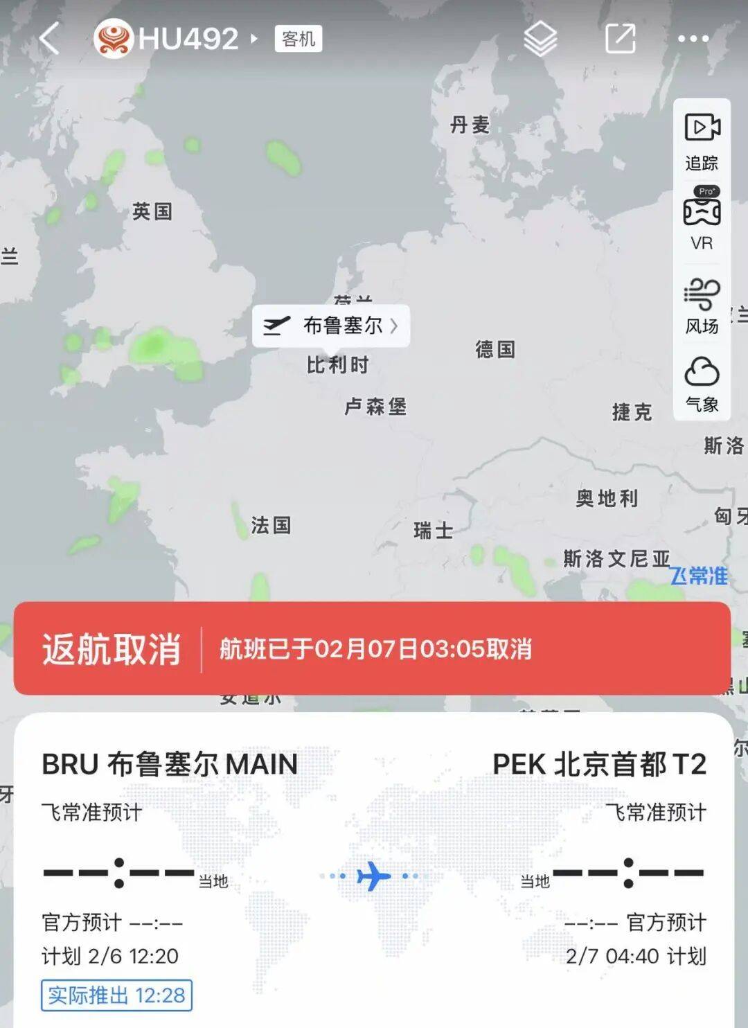 该航班原计划当地时间2月6日12:20从布鲁塞尔飞往北京。有乘客在社交平台发文表示,“以为是普通小事故。下了廊桥结果发现是挡风玻璃碎了。”现代快报记者在社交平台发现,有多名网友称在飞机上看到HU492在空中放油,随后飞机返航。还有网友发布了该架飞机前挡风玻璃破裂的照片。