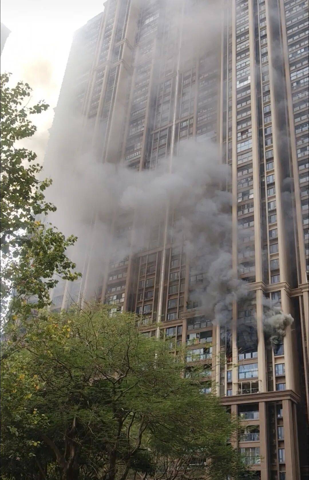 2月7日中午,广州市番禺区亚运城天誉小区一高层住宅突发火情,现场有浓烟涌出,烟味较大。