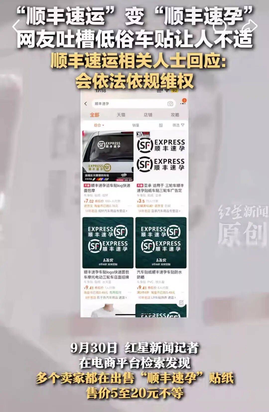 此前,多地网友曾发帖吐槽,在街上遇到一些面包车或电动车车身、尾箱贴有“顺丰速孕”贴纸。