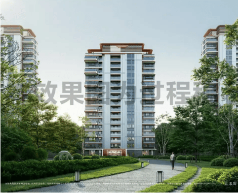 酒店化公区设计,酒店式落客区、中轴景观、首层入户大堂等自然与功能结合,予以松弛却不失仪式的氛围感