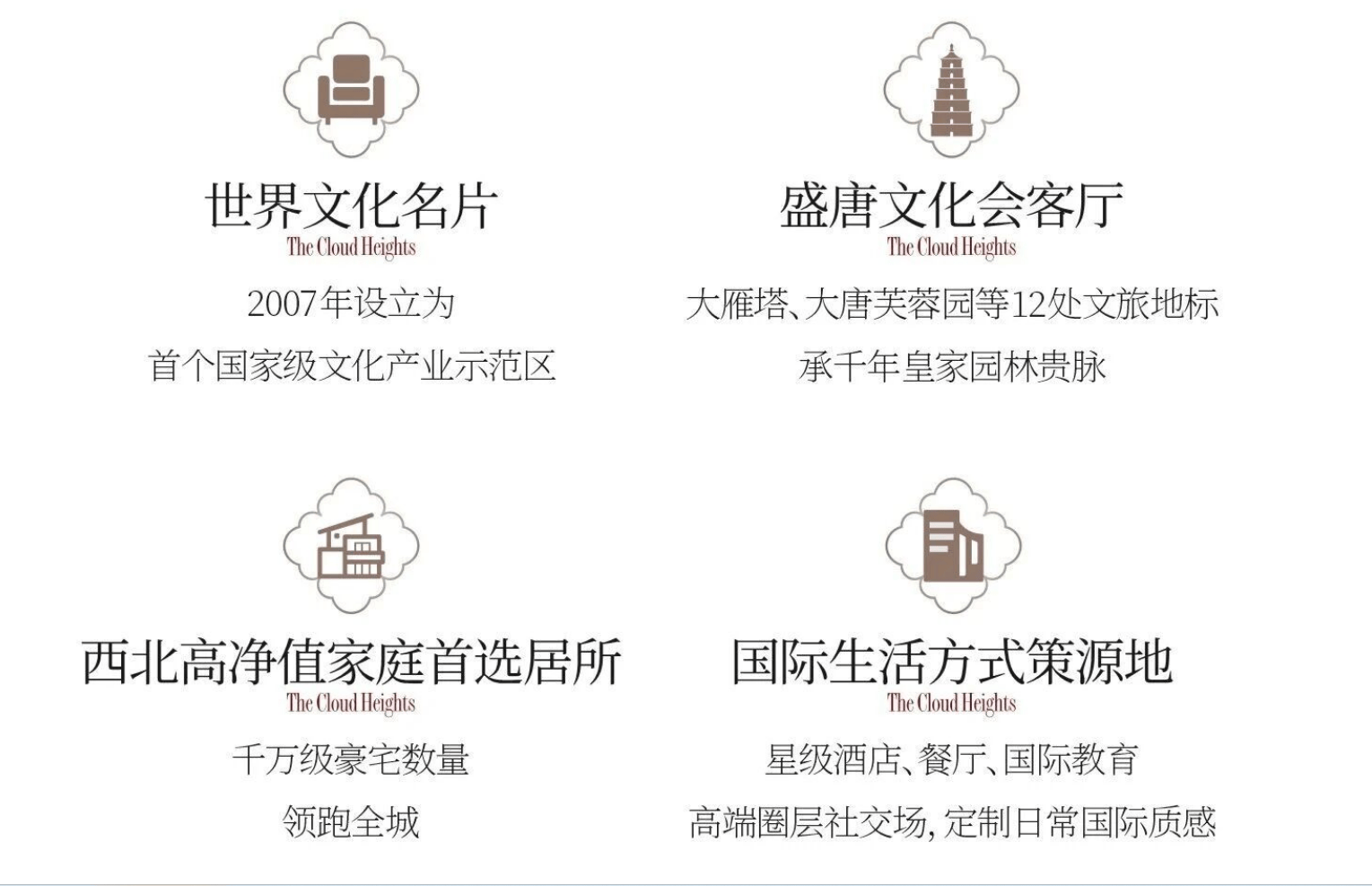曲江德闳学校、康桥国际学校等菁英教育资源西北妇女儿童医院、西安中大国际医院等权威医疗机构万众国际、曲江创意谷、万象城等商业矩阵W酒店、文华东方酒店、华尔道夫酒店等商务配套汉唐马术俱乐部、射击射箭俱乐部、国际高尔俱乐部,SPA养生会所等定制级休闲娱乐鼎配教育、医疗、商配与公园群落共生,凝萃超配生活天赋芯址。
