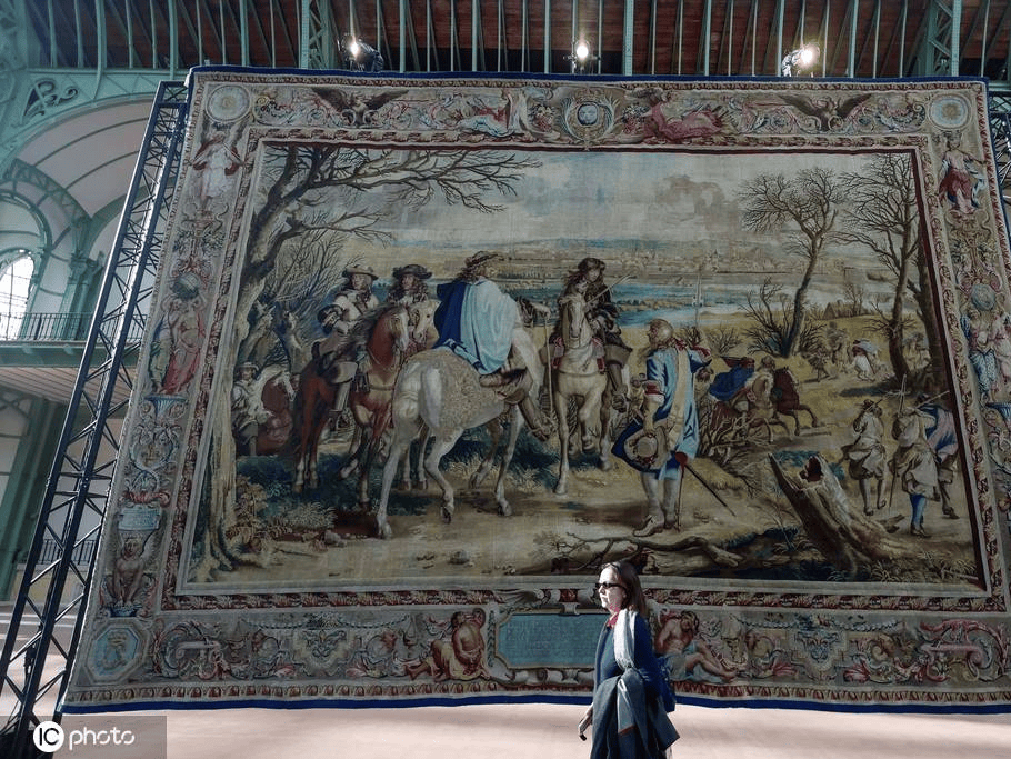 该展览首次呈现约30幅为路易十四制作的巨型挂毯,这批挂毯原为卢浮宫大画廊定制,全套共92幅。
