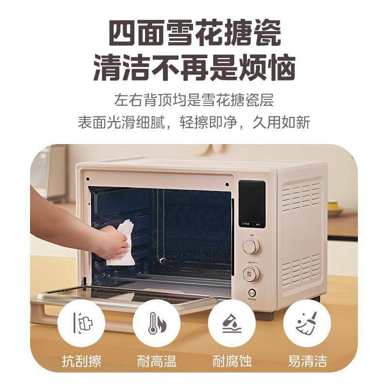 机身虽配备32L大容量,但通过四面搪瓷内胆的立体结构设计,实际可用空间堪比40L烤箱,整鸡、12寸披萨都能轻松容纳。