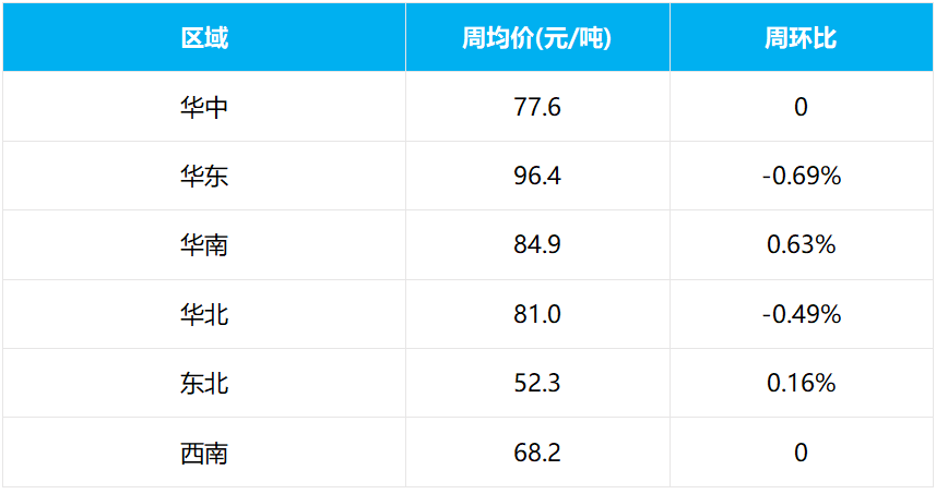 从全国重点区域砂石价格来看,华中砂石周均价77.6元/吨,周环比与上周持平;华东砂石周均价96.4元/吨,周环比下降0.69%;华南砂石周均价84.9元/吨,周环比上涨0.63%;华北砂石周均价81元/吨,周环比下降0.49%;东北砂石周均价52.3元/吨,周环比上涨0.16%;西南砂石周均价68.2元/吨,周环比与上周持平。
