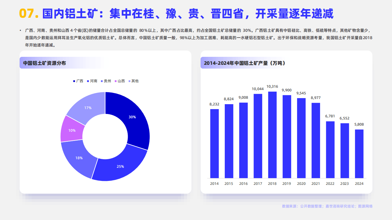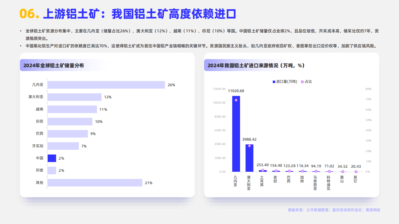 然而,行业的可持续发展面临严峻的资源桎梏。中国铝土矿储量仅占全球约2%,且品位偏低,导致氧化铝生产对进口矿石的依赖度已高达70%以上。资源集中分布于几内亚、澳大利亚等国,地缘政治的不确定性为供应链安全带来了持续性风险。在国内,尽管铝土矿资源集中在广西、河南等少数省份,但出于环保与资源保护考虑,开采量呈逐年递减趋势。这种“两头在外”(资源在外、市场部分在外)的结构性矛盾,使得上游资源保障成为产业链中最脆弱的一环。