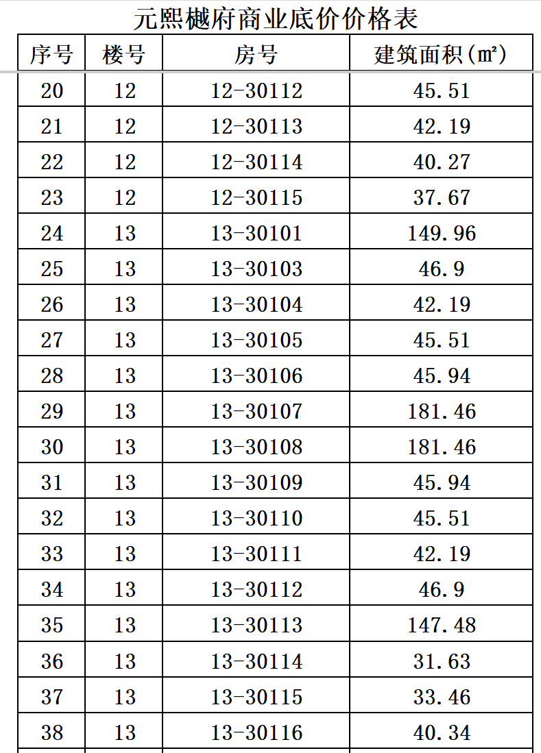 面积段分布:30-50㎡ 28间 50㎡以上 11间