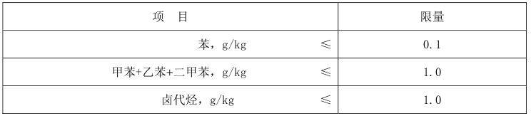苯、甲苯、乙苯、二甲苯、卤代烃应符合以下限量要求。