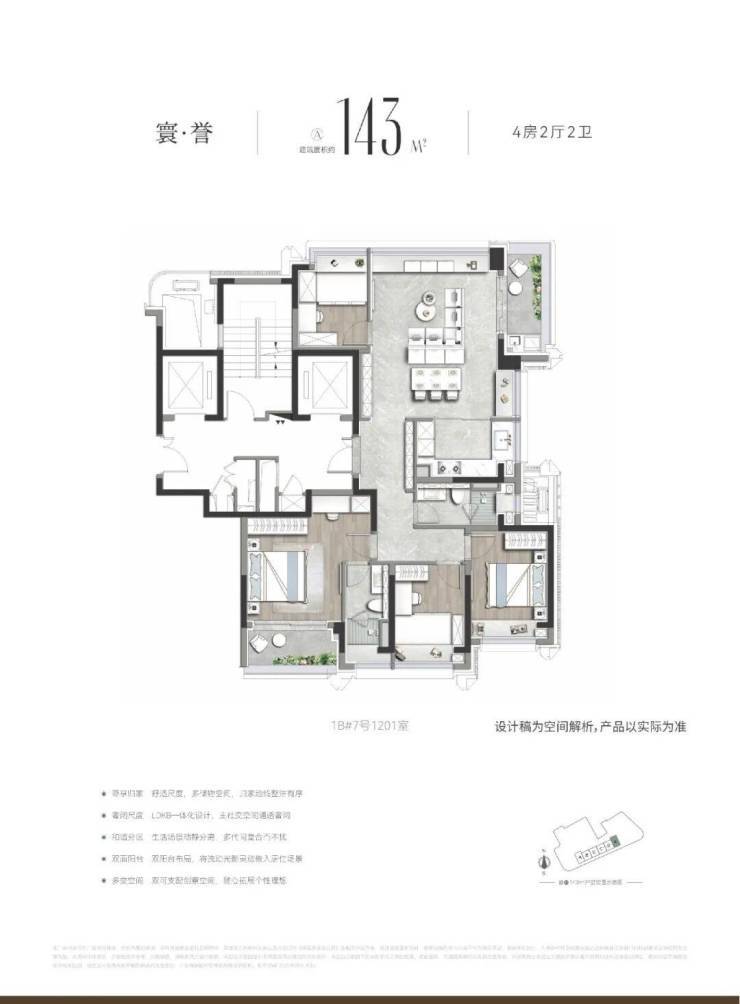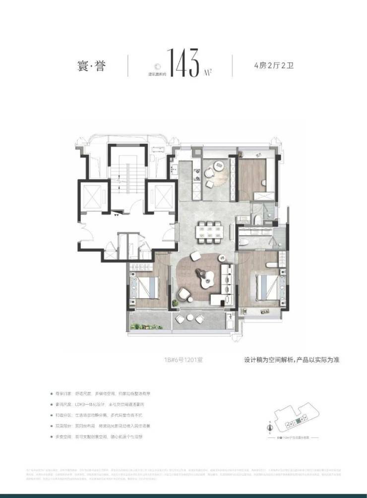 项目2个地块合计570多套房源,主力面积段包括建面约100-143㎡3-4房,誉静安首开96套建面约143㎡4房,具体户型如下: