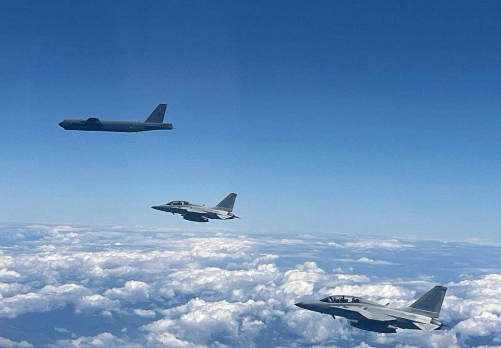 中国空军轰-6K刚去南海进行战备警巡,美军B-52战略轰炸机又来给菲律宾撑腰了!当地时间2026年2月7日,美国空军和菲律宾武装部队,在南海及吕宋海峡,进行菲律宾空军FA-50H战斗教练机联合美国空军B-52战略轰炸机巡逻,实弹演习。按照菲律宾媒体报道,2月2日到2月6日,菲律宾空军联合美国空军,在南海及吕宋海峡上空进行了联合演习,菲律宾空军出动了FA-50H战斗机,掩护美国空军B-52H战略轰炸机闯入南海,模拟进行了实弹投放,联合在南海进行飞越,位置在在吕宋岛以西的南海海域。
