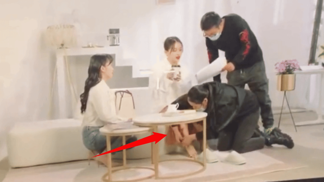 还有一幕让人唏嘘:周冬雨在拍戏时,站着喝咖啡,下面却有两个助理蹲着帮她整理鞋子。自己站着喝咖啡就不行吗?非得让别人来为自己做这些小事,这到底是在炫耀什么?
